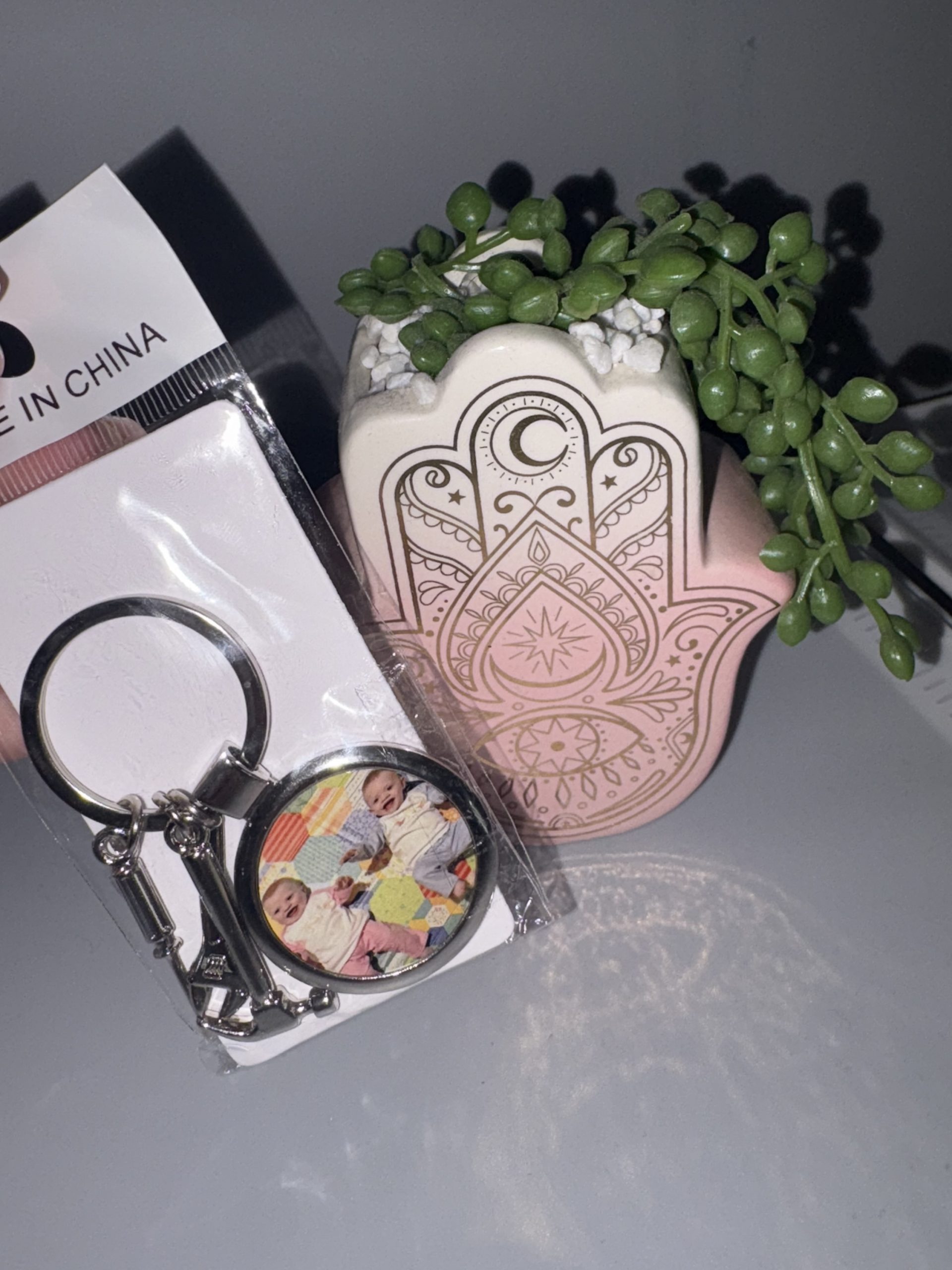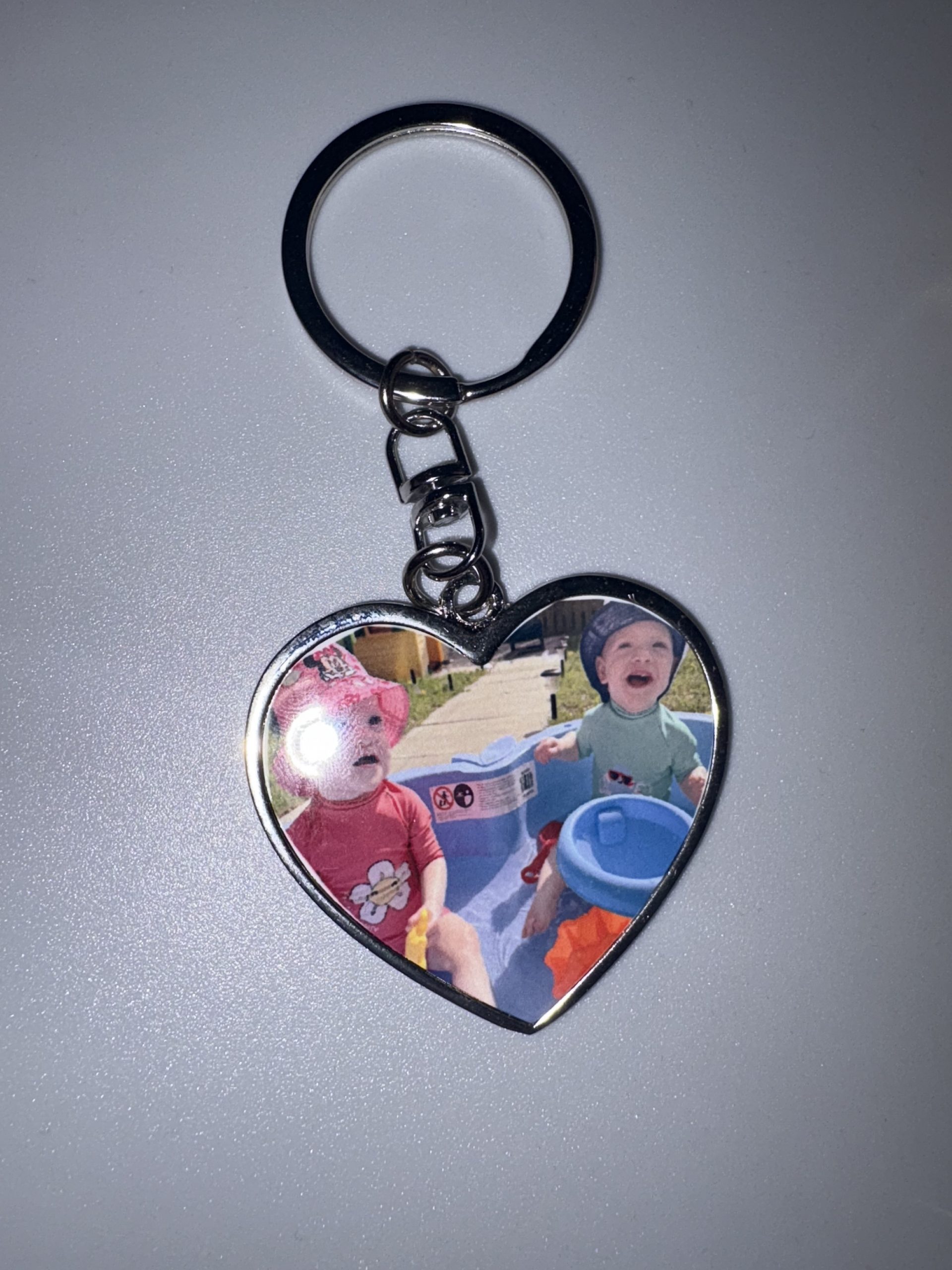 This heart shaped keyring is a perfect combination of style and personalisation Made from durable, high-quality material this keyring can be customized with any image making it a unique keepsake. The heart shape adds a touch of warmth and sentiment, while the sturdy keyring ensures it’s both practical and eye-catching. Ideal for couples, anniversaries, or as a small token of appreciation