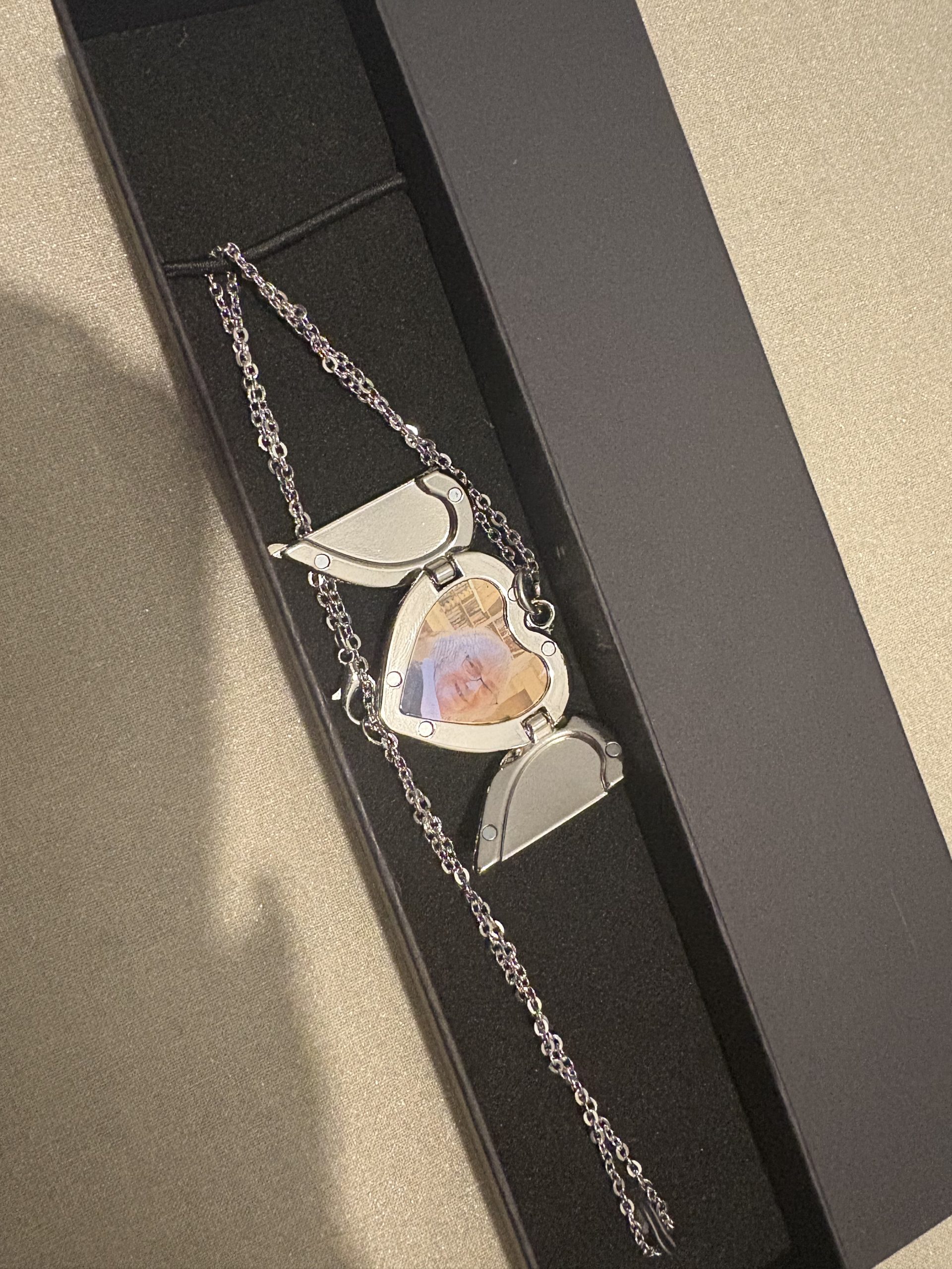 The perfect personalised product to keep your loved one close, An elegant heart shaped necklace made from zinc alloy with Angel wings that unfold to reveal a photo of your choice.